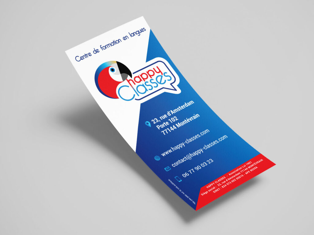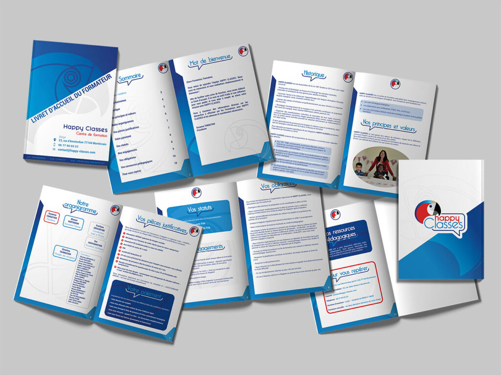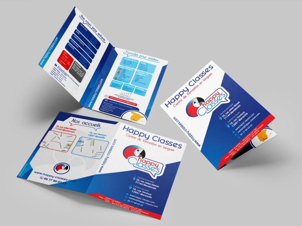 Création de l'identité visuelle d'un centre de formation en langues (logo, carte de visite, flyers, livret d'accueil du formateur (12 pages), plaquette de présentation du centre de formation)